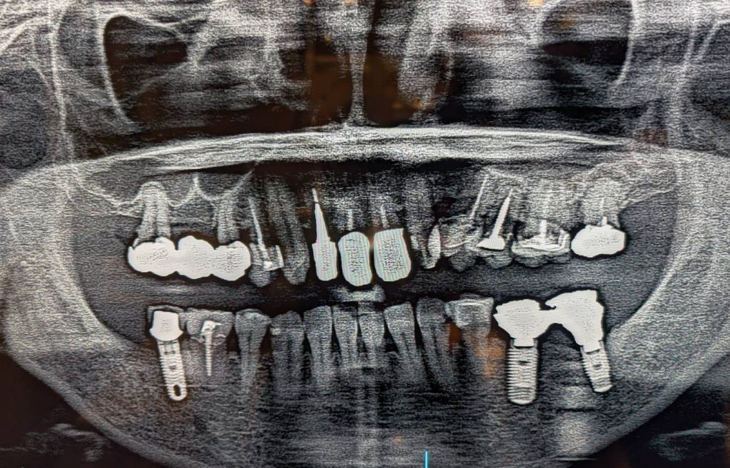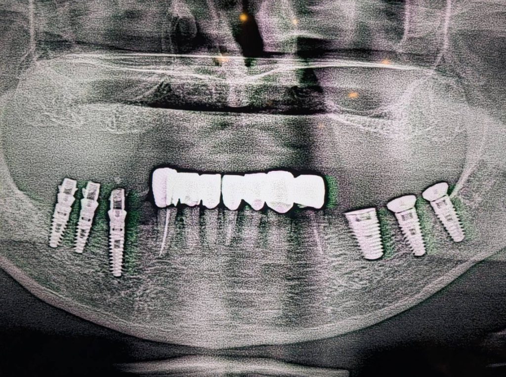 そこで、左右の奥歯にインプラントを埋入し、安定した土台を作る計画を立てました。